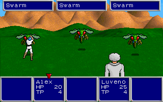 You, the player, assume the roles of the characters in the game and guide them on their quest. You begin as the young Alex Ossale, who is soon to be crowned as King of Algo. As you journey with Alex, you will begin to uncover the hidden evil that is yearning to destroy the Algo system. This is not a game that can be finished quickly; you must travel across the worlds of Algo battling beasts, picking up money, equipment and clues as you go. The game will end when you have completed the quest, or when all members of your party have died.